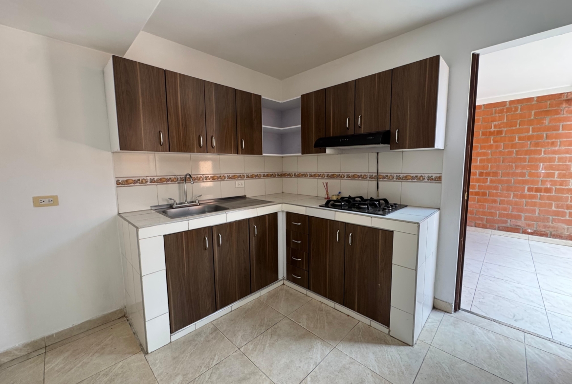 El conjunto cuenta con zonas verdes, piscina y vigilancia privada.