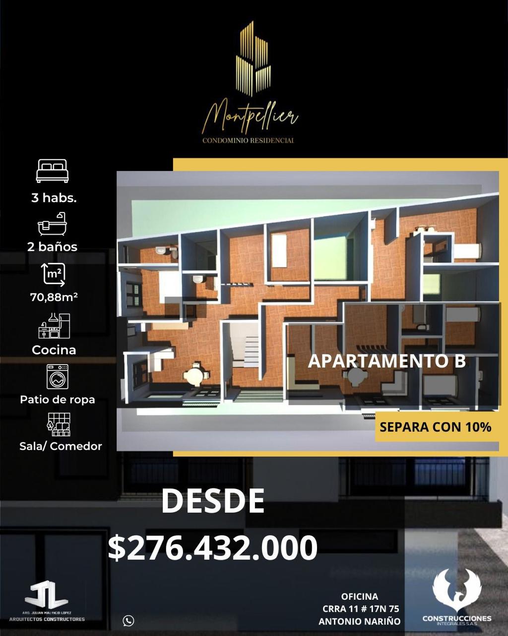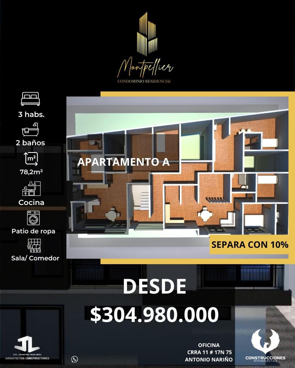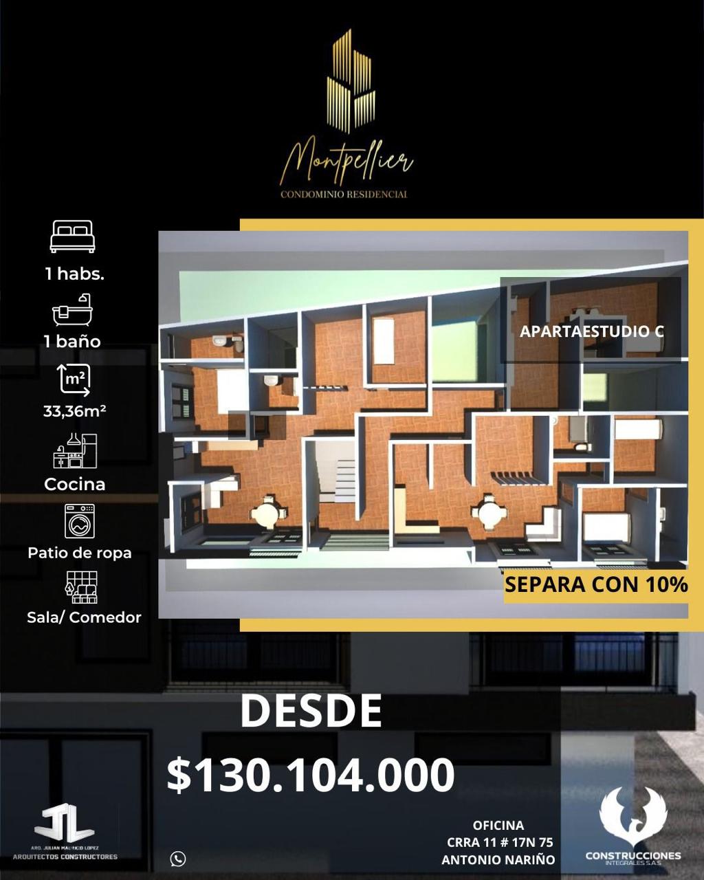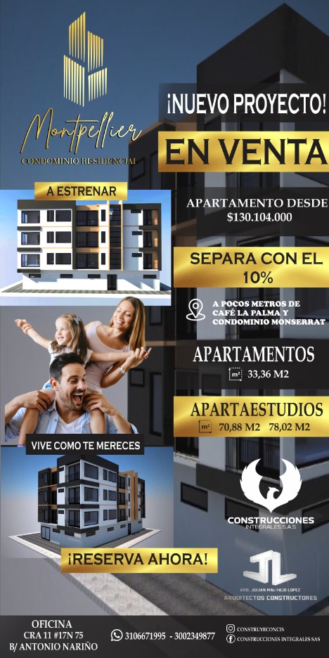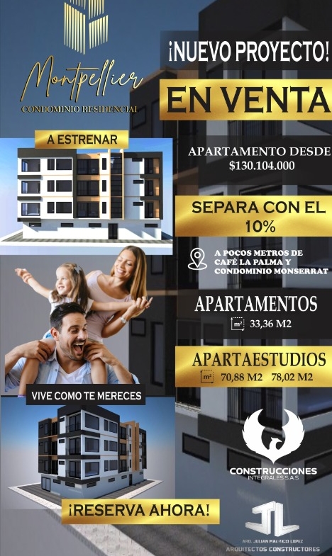 Se vende proyecto de apartamentos y Apartaestudios sobre planos en el Condominio Residencial Montpellier ubicado sector vía al bosque, hay 3 tipos de inmuebles detallados a continuación: